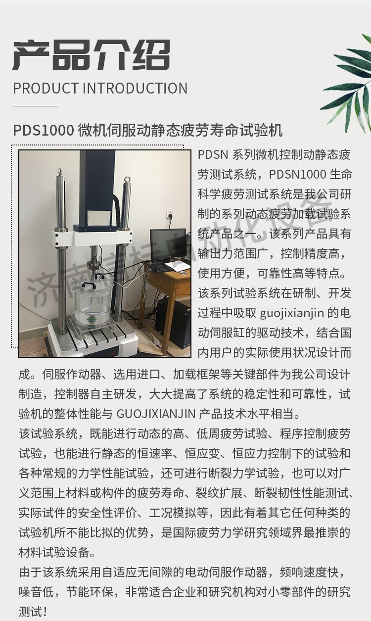 該試驗(yàn)系統(tǒng),既能進(jìn)行動態(tài)的高、低周疲勞試驗(yàn)、程序控制疲勞試驗(yàn),也能進(jìn)行靜態(tài)的恒速率、恒應(yīng)變、恒應(yīng)力控制下的試驗(yàn)和各種常規(guī)的力學(xué)性能試驗(yàn),還可進(jìn)行斷裂力學(xué)試驗(yàn),也可以對廣義范圍上材料或構(gòu)件的疲勞壽命、裂紋擴(kuò)展、斷裂韌性性能測試、實(shí)際試件的安全性評價、工況模擬等,因此有著其它任何種類的試驗(yàn)機(jī)所不能比擬的優(yōu)勢,是國際疲勞力學(xué)研究領(lǐng)域界最推崇的材料試驗(yàn)設(shè)備。 由于該系統(tǒng)采用自適應(yīng)無間隙的電動伺服作動器,頻響速度快,噪音低,節(jié)能環(huán)保,非常適合企業(yè)和研究機(jī)構(gòu)對小零部件的研究測試! 2.優(yōu)勢特點(diǎn): ?無需油源的直線電機(jī)技術(shù),保證潔凈的測試環(huán)境 ? 軸向通道采用Can總線式控制方式 ? 高速直線作動器 ? 獨(dú)特的驅(qū)動器軸承系統(tǒng),確保由于樣品和夾具的偏移或是有側(cè)向力情況下,加載鏈仍處于對中狀態(tài) ? 適用于各種材料和元器件的動靜態(tài)測試 ? 高動態(tài)性能,頻率zuida可達(dá)50 Hz ? ±3000N zuida動態(tài)軸向載荷 ? 光學(xué)編碼器用于精確的數(shù)字位移控制,及對試樣的變形控制。 ? 單相電源驅(qū)動,無需額外液壓油源、冷卻水、氣動空氣 ? 基于業(yè)內(nèi)先進(jìn)控制方式的數(shù)字控制器 ? 高剛度、精確對準(zhǔn)的雙立柱加載框架與位于橫梁上的驅(qū)動器 ? Dcell 先進(jìn)載荷傳感器技術(shù),實(shí)現(xiàn)更快測試,減少慣性差 ? 靈活多樣的T型臺底座,適用于裝配各種規(guī)則/不規(guī)則的夾具和樣品