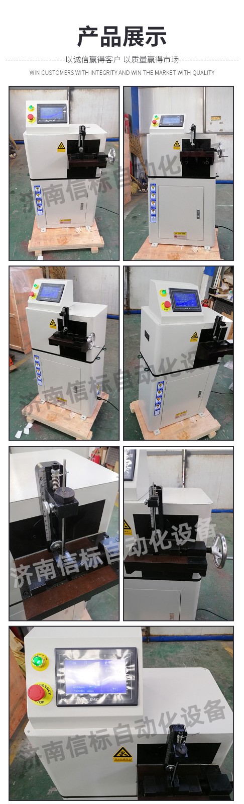 主要技術參數 1.試樣直徑:Φ0.3-Φ10mm 2.試樣長度:150-250mm 3.彎曲角度:±90°(平面彎曲) 4.計數范圍:99999 5.顯示方式:液晶顯示,自動記錄次數 6.彎曲速度:≤60rpm 7.電機功率:1.5kw 8.電 源:220V,50Hz 9.外形尺寸:740*628*1120mm 10.主機重量:約200 kg 結構特征與工作原理 本試驗機主要由主機和電器測控系統兩大部分組成,采用機械傳動,施加試驗力矩使試樣反復彎曲,利用光電開關來檢測彎曲試驗次數。試樣斷裂后自動停機,擺桿復位,液晶表自動顯示,記錄彎曲試驗次數。 主機 主機由電機,通過皮帶輪帶動蝸桿蝸輪副減速,再由曲柄—擺桿機構,帶動圓柱齒輪傳動,圓柱齒輪帶動擺桿做±90°回轉,從而使擺桿上的導套帶動試樣做±90°的彎曲,達到試驗的目的。在圓柱齒輪上裝有記數用的裝置,試樣每彎曲一次,光電開關采集一次信號,這樣就達到了記數的目的。 試驗結束后,如果擺桿沒有停到中間位置,按復位鍵,則由另一只光電開關采集信號,使擺桿恢復到中間位置。 在擺桿上,裝有撥桿,而撥桿上裝有內徑大小不同的導套,針對不同粗細的試樣,把撥桿調整到不同的高度,并使用不同的導套。將導套放入撥桿孔內,用扭簧將其別住,并使其與撥桿導通。 在擺桿的下方,裝有試樣夾持裝置。手動旋轉絲杠,使活動鉗口平移,將試樣夾緊。對不同直徑的試樣,更換相應的鉗口和導套(鉗口和導套上有標記)。
