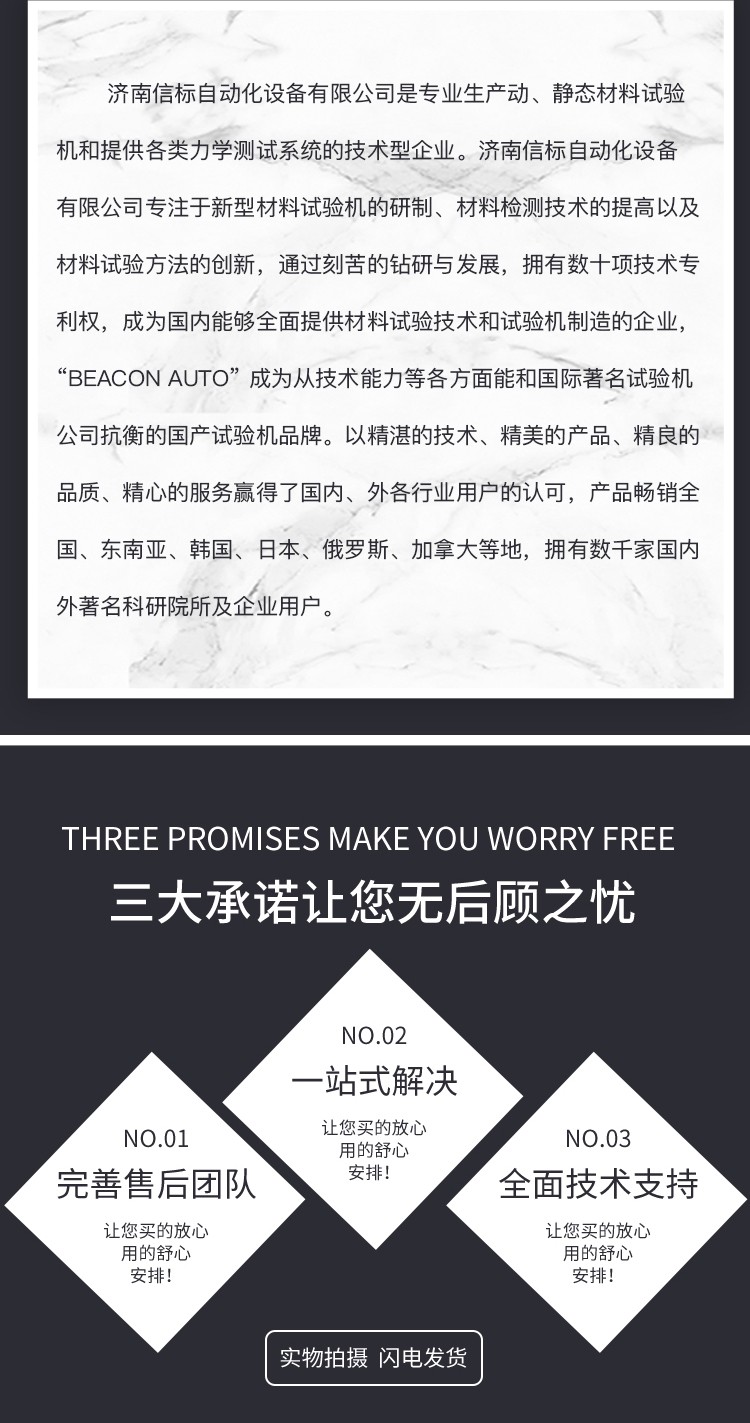 五、系統配置 1.主機一臺; 2.高精密導軌+滑塊二副; 3.減速系統一套 4.高精度負荷傳感器一只; 5.噴塑外殼一套 6.電源線、數據線各一根 7.地腳螺栓一套 8.試驗工具一套 9.扭轉附具一套 10.說明書、合格證、裝箱單各一份 11.全數字MCU控制系統一套;