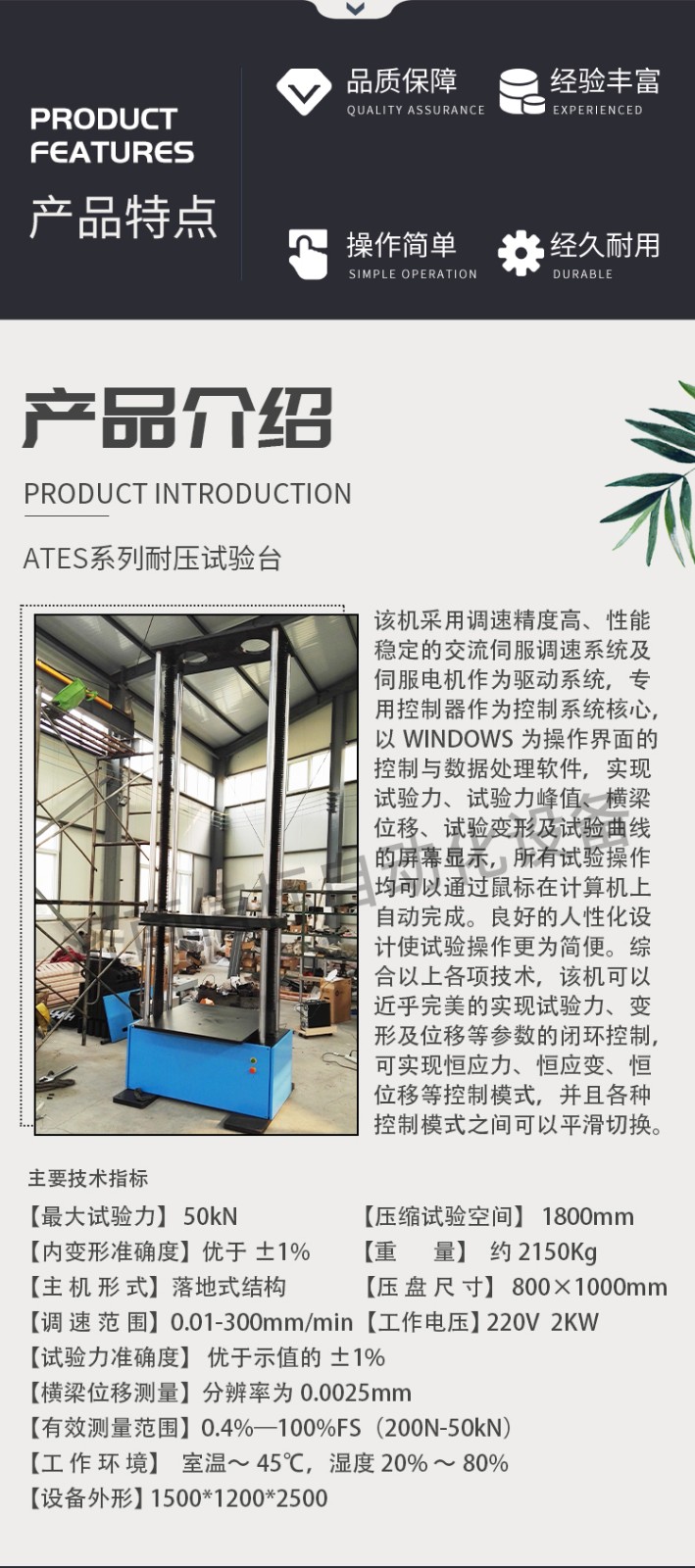 硬質合金壓力試驗機技術參數