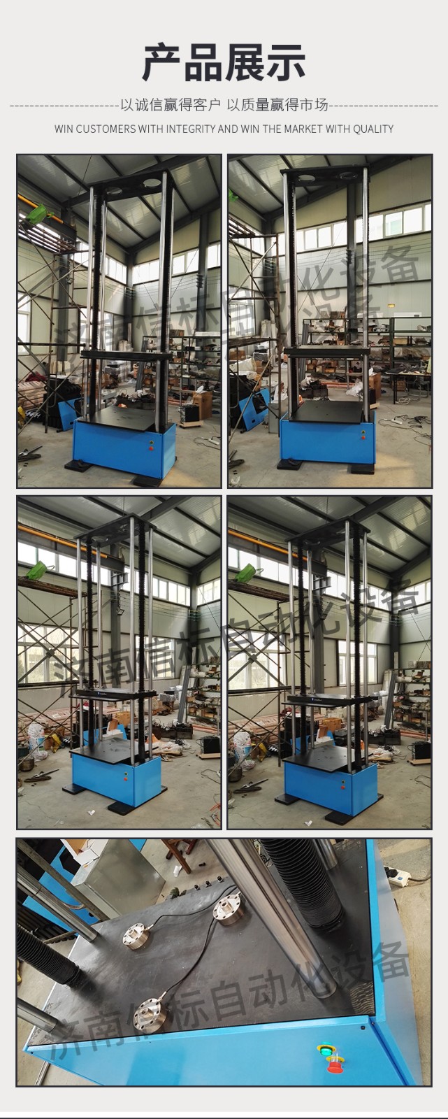 濟南信標自動化設備有限公司主要生產:動靜態萬能疲勞試驗機,接骨板彎曲試驗機,縫合線拉伸疲勞試驗機,髖膝關節磨損試驗機,電子萬能試驗機、液壓萬能試驗機、巖石三軸、四軸,電液拉力試驗機,材料試驗機,高低溫蠕變,高低頻疲勞,拉伸、扭轉、杯突等二十多個系列兩千多個的品種。