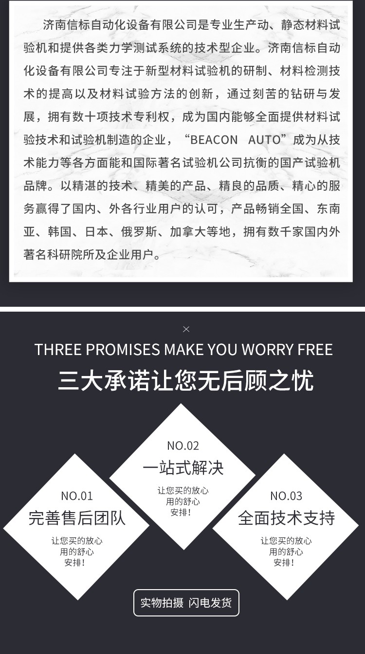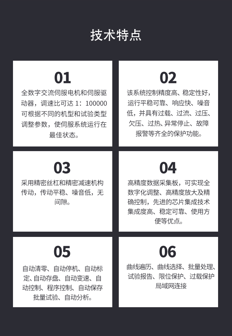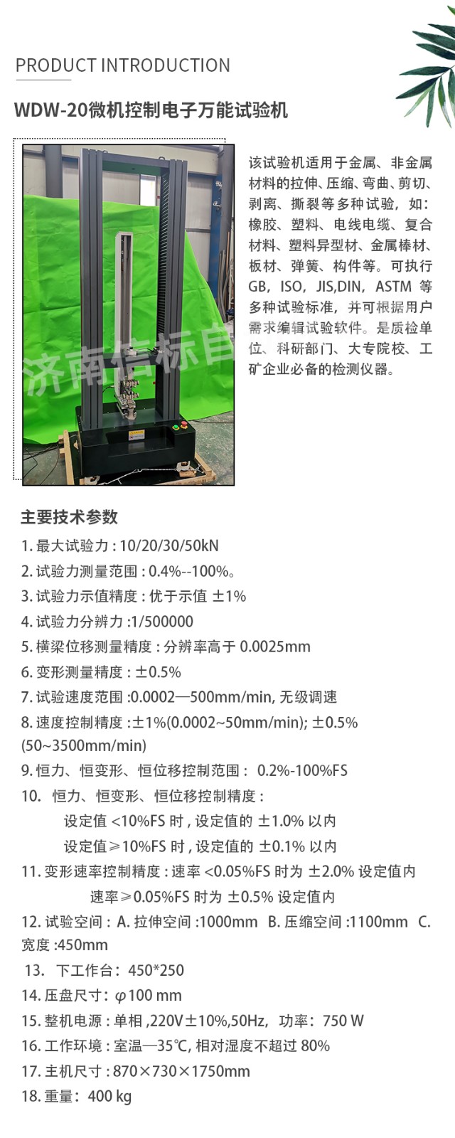 測(cè)量參數(shù): 1. 最大試驗(yàn)力: 10/20/30/50kN 2. 試驗(yàn)力測(cè)量范圍: 0.4%--100%。 3. 試驗(yàn)力示值精度:優(yōu)于示值±1% 4. 試驗(yàn)力分辨力:1/500000 5. 橫梁位移測(cè)量精度:分辨率高于0.0025mm 6. 變形測(cè)量精度: ±0.5% 7. 試驗(yàn)速度范圍:0.0002—500mm/min,無(wú)級(jí)調(diào)速 8. 速度控制精度:±1%(0.0002~50mm/min); ±0.5%(50~3500mm/min) 9. 恒力、恒變形、恒位移控制范圍: 0.2%-100%FS 10.恒力、恒變形、恒位移控制精度: 設(shè)定值<10%FS時(shí),設(shè)定值的±1.0%以內(nèi) 設(shè)定值≥10%FS時(shí),設(shè)定值的±0.1%以內(nèi) 11. 變形速率控制精度: 速率<0.05%FS時(shí)為±2.0%設(shè)定值內(nèi) 速率≥0.05%FS時(shí)為±0.5%設(shè)定值內(nèi) 12. 試驗(yàn)空間: A.拉伸空間:1000mm B.壓縮空間:1100mm C.寬度:450mm 13.下工作臺(tái):450*250 14. 壓盤(pán)尺寸:φ100 mm 15. 整機(jī)電源:單相,220V±10%,50Hz,功率:750 W 16. 工作環(huán)境:室溫—35℃,相對(duì)濕度不超過(guò)80% 17. 主機(jī)尺寸: 870×730×1750mm 18. 重量:400 kg 三、產(chǎn)品配置: 1、主機(jī) 一套 2、松下A7全數(shù)字伺服電機(jī)及伺服驅(qū)動(dòng)器; 一套 3、高精度負(fù)荷傳感器; 5kn/1kn/500N/200/ 各一支 4、Hiwin精密滾珠絲杠; 2支 5、光電編碼器(2500線,內(nèi)置); 1支 6、夾具:滿足海綿/汽車(chē)座椅所需工裝 1套(有多種) 7、三閉環(huán)測(cè)量系統(tǒng)一套,采用力,位移,應(yīng)變等多種控制方式,試驗(yàn)過(guò)程中可實(shí)時(shí)顯示力-位移,力-時(shí)間,應(yīng)力-應(yīng)變等多種試驗(yàn)曲線,并可自動(dòng)得出最大負(fù)荷,拉伸強(qiáng)度,斷裂伸長(zhǎng)率等多種結(jié)果參數(shù)。 8、HP品牌計(jì)算機(jī),21寸液晶顯示器; 9、打印機(jī):HPA4彩色噴墨打印機(jī); 10、專用試驗(yàn)軟件:可執(zhí)行GB,ISO,JIS、DIN,ASTM等多種試驗(yàn)標(biāo)準(zhǔn),全開(kāi)放式,功能強(qiáng)大,方便操作,免費(fèi)提供升級(jí)軟件,并可根據(jù)用戶需求自行編輯試驗(yàn)軟件。