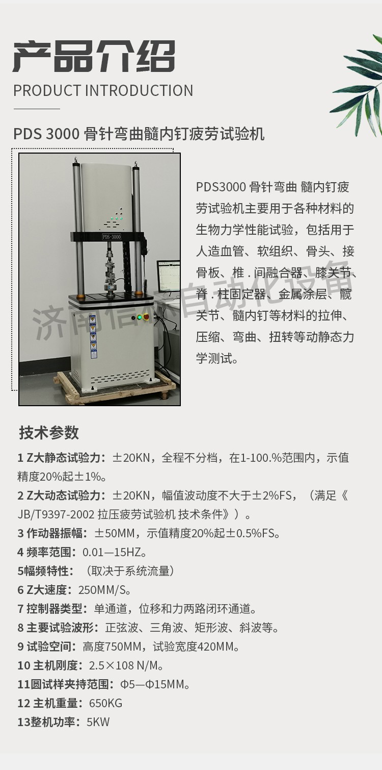濟南信標自動化設備有限公司主要生產:動靜態萬能疲勞試驗機,接骨板彎曲試驗機,縫合線拉伸疲勞試驗機,髖膝關節磨損試驗機,電子萬能試驗機、液壓萬能試驗機、巖石三軸、四軸,電液拉力試驗機,材料試驗機,高低溫蠕變,高低頻疲勞,拉伸、扭轉、杯突等二十多個系列兩千多個的品種。