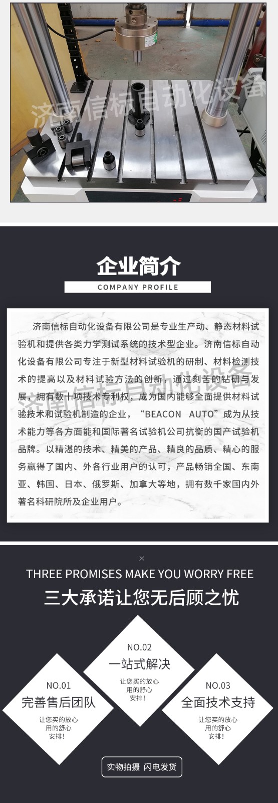 濟(jì)南信標(biāo)自動(dòng)化設(shè)備有限公司主要生產(chǎn):動(dòng)靜態(tài)萬(wàn)能疲勞試驗(yàn)機(jī),接骨板彎曲試驗(yàn)機(jī),縫合線(xiàn)拉伸疲勞試驗(yàn)機(jī),髖膝關(guān)節(jié)磨損試驗(yàn)機(jī),電子萬(wàn)能試驗(yàn)機(jī)、液壓萬(wàn)能試驗(yàn)機(jī)、巖石三軸、四軸,電液拉力試驗(yàn)機(jī),材料試驗(yàn)機(jī),高低溫蠕變,高低頻疲勞,拉伸、扭轉(zhuǎn)、杯突等二十多個(gè)系列兩千多個(gè)的品種。