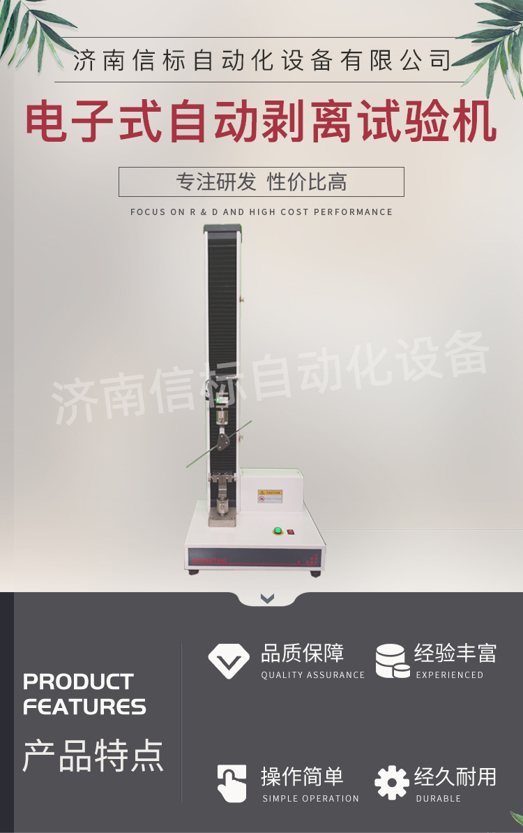 高強(qiáng)度膠黏劑膠帶浮棍法90度180度剝離強(qiáng)度試驗(yàn)機(jī)主要功能及特點(diǎn): 1、主機(jī): 1.1調(diào)速系統(tǒng)采用伺服電機(jī)和自主研發(fā)減速系統(tǒng),性能穩(wěn)定可靠,具有過流、過壓、過載等保護(hù)裝置。調(diào)速范圍可達(dá)0.05~500mm/min。 1.2傳動(dòng)部分采用圓弧同步齒形帶,精密絲杠副傳動(dòng),傳動(dòng)平穩(wěn),噪音低,傳動(dòng)效率高。 1.3萬向節(jié)采用十字插銷結(jié)構(gòu),而且具有擺角限制功能,一方面便于試樣夾持,保證試驗(yàn)同心度,另一方面很好的消除了不規(guī)則試樣對(duì)傳感器的影響。 2、控制系統(tǒng)、操作軟件及數(shù)據(jù)處理系統(tǒng) 2.1計(jì)算機(jī)控制系統(tǒng),具有集成度高、性能穩(wěn)定、調(diào)整方便等優(yōu)點(diǎn)。可以對(duì)實(shí)驗(yàn)數(shù)據(jù)進(jìn)行實(shí)時(shí)采集,對(duì)實(shí)驗(yàn)特性曲線實(shí)現(xiàn)實(shí)時(shí)動(dòng)態(tài)顯示,試驗(yàn)數(shù)據(jù)文件能以Access常用數(shù)據(jù)庫或SQLserve大型數(shù)據(jù)庫的方式保存,方便實(shí)現(xiàn)客戶的資源共享及網(wǎng)絡(luò)管理,以及用戶的再分析。對(duì)于用戶自定義的各種word2000報(bào)表,該軟件可輕松實(shí)現(xiàn)訪問,解決了不同用戶或同一用戶在不同時(shí)期對(duì)試驗(yàn)報(bào)表有不同需要的難題。該軟件可處理試驗(yàn)力、位移、時(shí)間、變形的原始數(shù)據(jù)及由此派生的曲線。