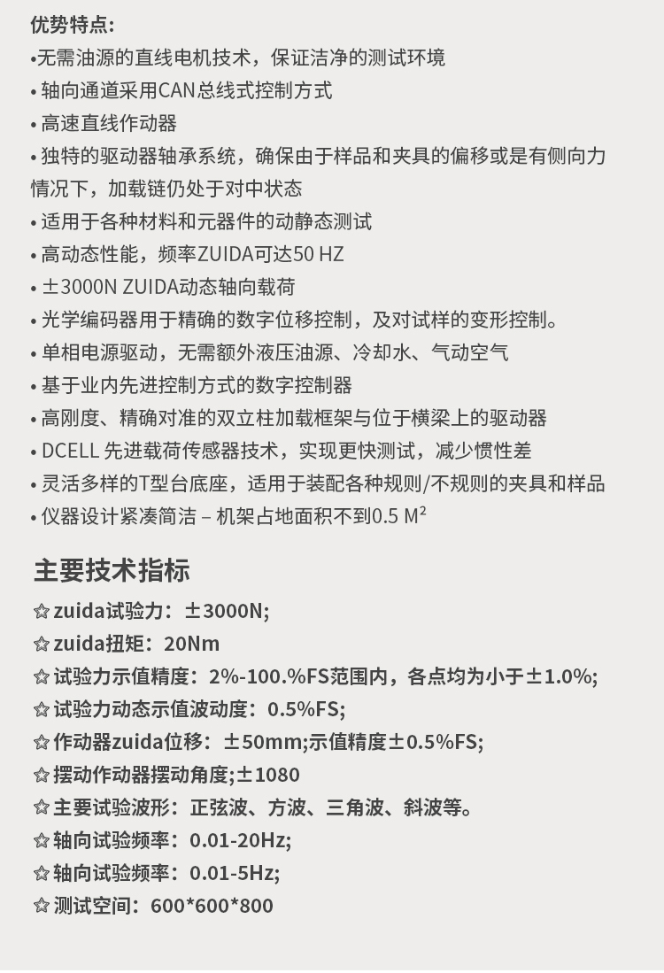 ?無需油源的直線電機技術,保證潔凈的測試環境