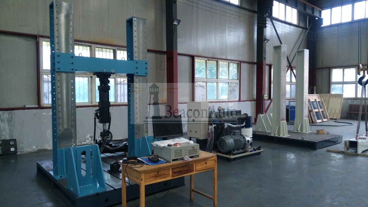 汽車配件三角臂多通道力學(xué)加載試驗(yàn)系統(tǒng) 關(guān)鍵詞:三角臂反復(fù)加載疲勞試驗(yàn)機(jī),控制臂疲勞試驗(yàn)機(jī),平衡桿反復(fù)加載壓力試驗(yàn)機(jī),汽車車間加載試驗(yàn)機(jī)。 汽車配件三角臂多通道力學(xué)加載試驗(yàn)系統(tǒng)產(chǎn)品用途: 汽車配件三角臂多通道力學(xué)加載試驗(yàn)系統(tǒng)適用于主要應(yīng)用于汽車車架,駕駛室,三角臂,控制臂,平衡桿,減震器等力學(xué)性能的試驗(yàn)研究。主要用途包括:完成被測試件的低周反復(fù)加載,保載、卸載等常規(guī)試驗(yàn)。 該系列產(chǎn)品具有輸出力范圍廣,控制精度高,使用方便,可靠性高等特點(diǎn)。該系統(tǒng)在研制、開發(fā)過程中吸取國際先進(jìn)電液伺服控制技術(shù),結(jié)合國內(nèi)用戶的實(shí)際使用狀況設(shè)計(jì)而成。伺服作動(dòng)器、伺服動(dòng)力液壓站、力加載框架等關(guān)鍵部件為我公司設(shè)計(jì)制造,伺服閥、傳感器、密封件等關(guān)鍵外購件均選用國際、國內(nèi)同類產(chǎn)品的著名品牌產(chǎn)品,大大提高了系統(tǒng)的穩(wěn)定性和可靠性,試驗(yàn)機(jī)的整體性能與國際先進(jìn)產(chǎn)品技術(shù)水平相當(dāng)。 該試驗(yàn)系統(tǒng),既能低周疲勞試驗(yàn)、程序控制疲勞試驗(yàn),也能進(jìn)行靜態(tài)的恒速率、恒應(yīng)變、恒應(yīng)力控制下的試驗(yàn)和各種常規(guī)的力學(xué)性能試驗(yàn),還可進(jìn)行斷裂力學(xué)試驗(yàn),自然力量模擬試驗(yàn),如地震、風(fēng)浪等。根據(jù)需要也可以進(jìn)行部分的工況模擬等,因此有著其它任何種類的試驗(yàn)機(jī)所不能比擬的優(yōu)勢; 在實(shí)際測試方面我們有針對結(jié)構(gòu)試驗(yàn)而設(shè)計(jì)的大噸位作動(dòng)器,作動(dòng)器形式有單出桿和雙出桿兩種結(jié)構(gòu)形式,輸出力范圍從100kN到10000kN,行程可根據(jù)用戶實(shí)際需求而定,作動(dòng)器標(biāo)準(zhǔn)行程200--500mm(±100mm/±250mm),根據(jù)結(jié)構(gòu)試驗(yàn)要求可配置不同規(guī)格的作動(dòng)器,廣泛應(yīng)用于車輛車架,、復(fù)合結(jié)構(gòu)件材料的靜態(tài)力學(xué)性能試驗(yàn),包括拉伸、壓縮、三點(diǎn)四點(diǎn)彎曲試驗(yàn)、;也可以進(jìn)行結(jié)構(gòu)件的疲勞試驗(yàn),如長平衡桿,轉(zhuǎn)臂,花鍵軸等。從簡單的靜態(tài)結(jié)構(gòu)試驗(yàn)到原尺寸大型構(gòu)件路普模擬試驗(yàn),從單通道試驗(yàn)到大型構(gòu)件試驗(yàn)室配置,從整車車身到三軸橡膠套試驗(yàn),該系列設(shè)備均可為你提供極大的幫助,可以助你驗(yàn)證新概念、開發(fā)更新、更有效、更經(jīng)濟(jì)的土木材料和結(jié)構(gòu)。 汽車配件三角臂多通道力學(xué)加載試驗(yàn)系統(tǒng)主要組成部分有: 1.自平衡門式反力框架、1套 2.伺服作動(dòng)器:20KN雙出桿作動(dòng)器2只; 3.伺服動(dòng)力液壓站;大流量遠(yuǎn)程控制伺服液壓系統(tǒng),包括分油閥塊和管路。 4.?dāng)?shù)據(jù)采集控制系統(tǒng):三多通道靜載控制器,包括擴(kuò)展采集和軟件 5.各路力傳感器和位移傳感器 6. 根據(jù)需要配置各種球鉸支座 汽車配件三角臂多通道力學(xué)加載試驗(yàn)系統(tǒng)主要技術(shù)指標(biāo) 1l最大垂向負(fù)荷: 拉壓雙向20kN x1 2l最大橫向負(fù)荷: 拉壓雙向20kN x1 3l試驗(yàn)力精度: ±0.5%; 4l試驗(yàn)力測量范圍: 2%~100%FS(全程不分檔) 5l試驗(yàn)力分辨率: 500000碼,且全程分辨率不變 6l水平/垂向測試頻率: 0.1-15hz (15hz 對應(yīng)5mm) 7l垂向作動(dòng)器行程: ±100mm 8l橫向作動(dòng)器行程: ±100mm 9l位移分辨率: 0.001mm; 10l位移測量精度: ±0.5%; 11l進(jìn)口內(nèi)置式位移傳感器精度: 優(yōu)于±0.1%; 12l過載保護(hù): 105%過載保護(hù)(無變形、無機(jī)械損傷) 13l整機(jī)噪聲: 不超過70dB 14l測力方式:采用高精度負(fù)荷傳感器測力 美國 15 控制方式:液壓加載,電液伺服閉環(huán)控制,屏幕直接顯示試驗(yàn)結(jié)果 16 液壓動(dòng)力源:封閉靜音結(jié)構(gòu) 可移動(dòng)式 17 管路和分油器:適應(yīng)場地結(jié)構(gòu)的高壓H型膠管及接頭 18 遠(yuǎn)程:遠(yuǎn)程升降控制,遠(yuǎn)程伺服動(dòng)力源控制 19 總線:多級多路輸出輸入線路總裝 更多汽車配件三角臂多通道力學(xué)加載試驗(yàn)系統(tǒng)資料請電話聯(lián)系我們。