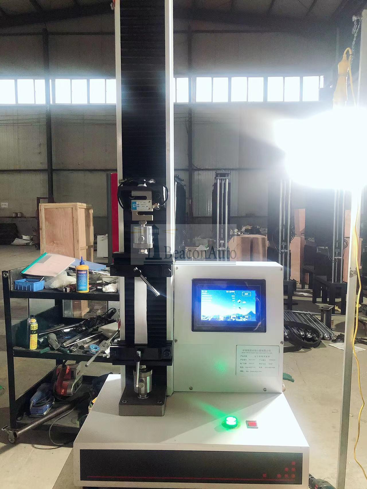 口罩隔離防護(hù)服抗拉強(qiáng)度試驗(yàn)機(jī) 口罩隔離防護(hù)服抗拉強(qiáng)度試驗(yàn)機(jī)產(chǎn)品型號:WDL-05 口罩隔離防護(hù)服抗拉強(qiáng)度試驗(yàn)機(jī)產(chǎn)品用途:該機(jī)廣泛應(yīng)用于醫(yī)用口罩,防護(hù)隔離服,口罩包裝袋,橡膠、塑料、紡織物、防水材料、無紡布等非金屬材料及金屬絲、金屬箔、金屬片的壓拉伸撕裂性能試驗(yàn)。 口罩隔離防護(hù)服抗拉強(qiáng)度試驗(yàn)機(jī)產(chǎn)品特點(diǎn):1、采用高精度、全數(shù)字調(diào)速系統(tǒng)及精密減速機(jī), 驅(qū)動(dòng)精密絲杠副進(jìn)行試驗(yàn),實(shí)現(xiàn)試驗(yàn)速度的大范圍調(diào)節(jié), 試驗(yàn)過程噪音低、運(yùn)行平穩(wěn)。 2、萬向節(jié)采用十字插銷結(jié)構(gòu),而且具有擺角限制功能, 一方面便于試樣夾持,保證試驗(yàn)同心度, 另一方面很好的消除了不規(guī)則試樣對傳感器的影響。 3、觸摸鍵操作方式,液晶顯示器實(shí)時(shí)顯示。 顯示界面可顯示試驗(yàn)方法選擇界面、試驗(yàn)參數(shù)選擇界面、試驗(yàn)操作及結(jié)果顯示界面和曲線顯示界面,方便快捷。 4、可實(shí)現(xiàn)試樣裝夾時(shí)橫梁快慢升降調(diào)整,具有過流、過壓、過載等保護(hù)裝置。 5、選配微機(jī)接口,可外接微機(jī)實(shí)現(xiàn)試驗(yàn)過程的控制及數(shù)據(jù)的存儲(chǔ)、打印。 口罩隔離防護(hù)服抗拉強(qiáng)度試驗(yàn)機(jī)技術(shù)參數(shù): 主要技術(shù)指標(biāo) | 型號 | WDL系列液晶屏顯電子拉力試驗(yàn)機(jī) | 規(guī)格 | WDL系列 | 試驗(yàn)力 | 200N | 300N | 500N | 1000N | 2000N | 結(jié)構(gòu)形式 | 單臂式 | 壓縮空間 | 600mm | 負(fù)荷測量范圍 | 最大負(fù)荷的2%-100% | 負(fù)荷測量精度 | 優(yōu)于示值的±1% | 橫梁位移速度 | 0-500mm/min無級調(diào)速 | 速度精度 | ±1% | 外形尺寸(mm) | 530*266*1450 | 夾具配置 | 拉伸夾具一套(根據(jù)用戶試樣要求) | 電源 | 單相交流220V±10%V | 重量(kg) | 60kg |