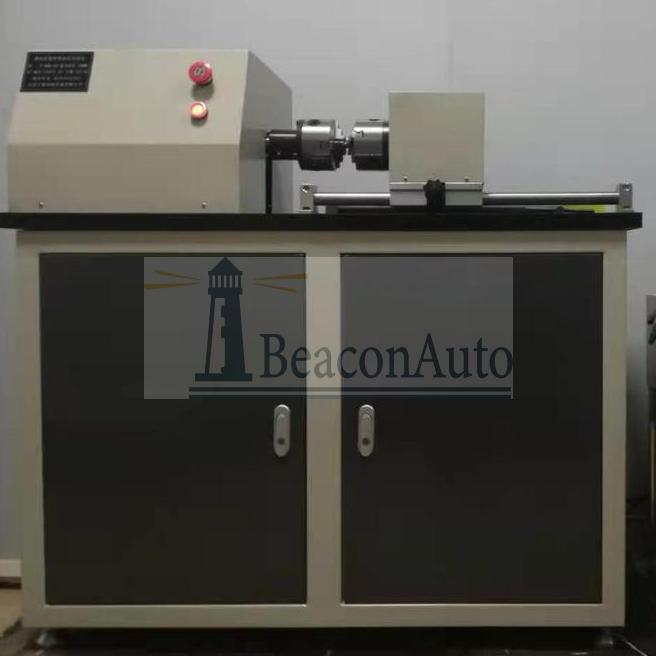GNZ-100光纜扭轉(zhuǎn)試驗(yàn)機(jī) (適用室外纜) 1.用途: GNZ-100光纜扭轉(zhuǎn)試驗(yàn)機(jī) (適用室外纜)適用于測試光纜承受機(jī)械扭轉(zhuǎn)的能力,通過施加正反向扭轉(zhuǎn)力,對于合格的光纜要 求光纖不斷裂,光纖的衰減變化不超過光纜產(chǎn)品詳細(xì)規(guī)范中規(guī)定的值,光纜護(hù)套不開裂, 纜 芯元構(gòu)件不損壞。 2. GNZ-100光纜扭轉(zhuǎn)試驗(yàn)機(jī)特點(diǎn): 本設(shè)備采用人機(jī)界面與PLC 控制,TFT 真彩屏顯示測試參數(shù)和試驗(yàn)數(shù)據(jù),配置不同的砝 碼及不同的夾套,能滿足接入網(wǎng)用蝶形引入光纜和其他光纜的扭轉(zhuǎn)試驗(yàn),速度無機(jī)調(diào)速,造型 美觀、性能穩(wěn)定、操作簡單、使用安全。